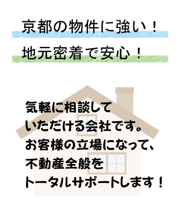地元密着で、京都の物件に強く、自信があります。